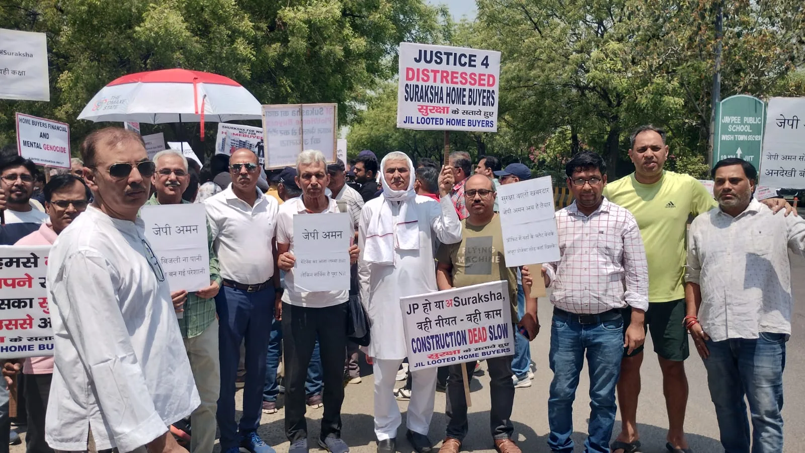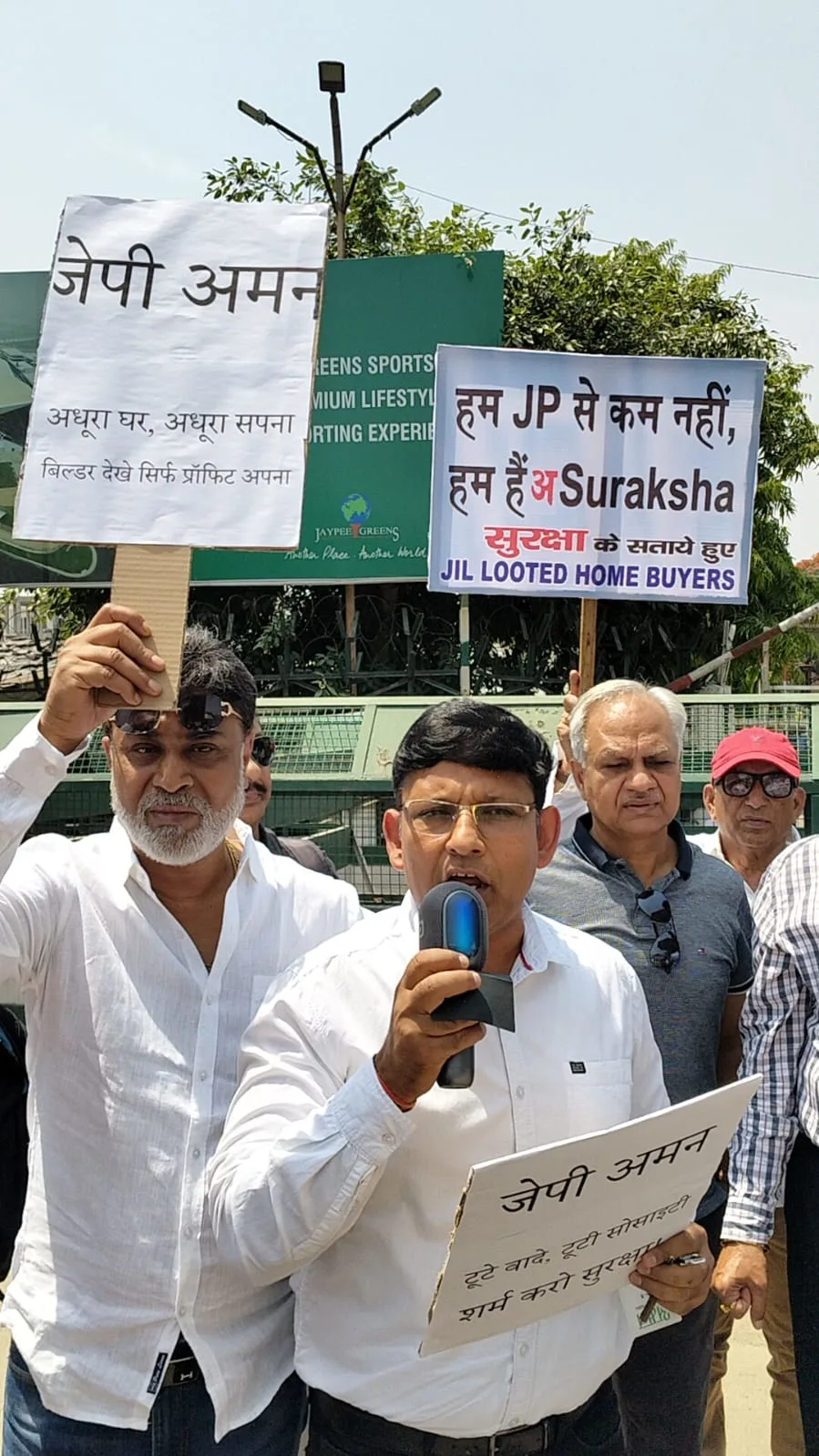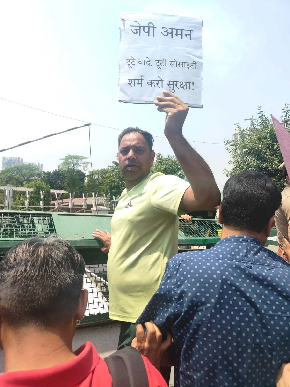 Residents of Jaypee Aman society protest against builder Suraksha over incomplete project work and poor maintenance